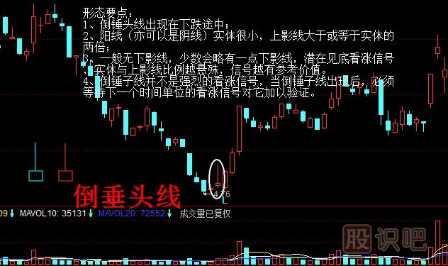 K線圖的買入形態(tài):倒垂頭線倒錘頭線實(shí)例:江蘇神通在經(jīng)過(guò)一輪下跌后,于6月22日在低位出現(xiàn)一根倒錘頭線,自此股份開始走出了一波反彈行情。形態(tài)簡(jiǎn)介:倒錘頭...