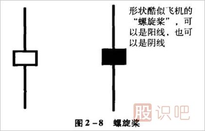 螺旋槳K線圖第二節(jié)螺旋槳一、形態(tài)認(rèn)識(shí)第一節(jié)里所說(shuō)的K線是沒有上下影線的光頭光腳K線,這一節(jié)所說(shuō)的K線正好相反,是K線的上方和下方均有影...