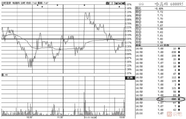 (5)判斷急漲急跌的真實性和有效性非常重要。假的急漲急跌是主力的反技術(shù)操作行為;而真的急漲急跌是盤中新一輪漲跌的起點,往往是盤中短線的極佳交易點。