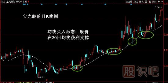 均線買入形態(tài):股價在20日均線獲利支撐