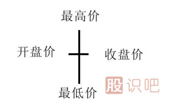 當(dāng)收盤價(jià)等于開盤價(jià),我們稱這種情況下收盤的K線為同價(jià)線或者十字星。這時(shí),上影線的長度表示最高價(jià)與開盤價(jià)的價(jià)差,上影線的最高點(diǎn)代表價(jià)格的最高點(diǎn),下影線的長度則代表收盤價(jià)與最低價(jià)之間的差距,下影線的最低點(diǎn)代表價(jià)格的最低點(diǎn),如圖1-3所示。