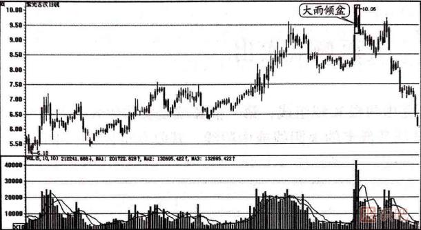 (2)凡在高位出現(xiàn)大雨傾盆,從規(guī)避風(fēng)險(xiǎn)的角度出發(fā),投資者還是減倉(cāng)操作為好,如果股價(jià)重心還在下移,就堅(jiān)決拋空離場(chǎng)。