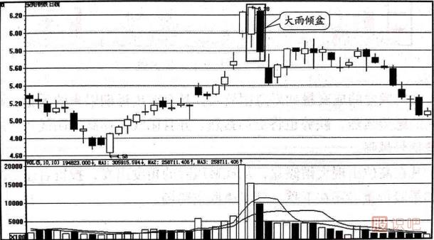 (1)大雨傾盆的成交量如果急劇放大,甚至放出近期以來(lái)的天量,則主力在高位出局的愿望強(qiáng)烈,跌勢(shì)也將更加猛烈。 并且陽(yáng)線實(shí)體高出陰線實(shí)體的部分樾多,轉(zhuǎn)勢(shì)信號(hào)越強(qiáng)。