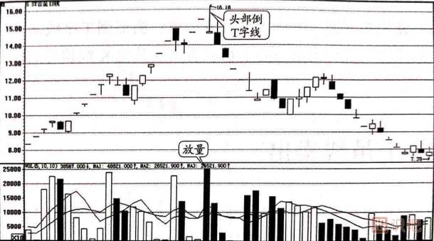 從頭部倒T字線的形狀中可以看出,在買賣雙方的爭斗中,一開始買方一度占據(jù)丁上風,但是在賣方的頑強抵抗之下,買方的力量持續(xù)減弱,最終退回到目口原先發(fā)動攻擊的地方。此時買方其實已經(jīng)是強餐之末,頭部倒T字線表明了賣方的潛在力量已經(jīng)得到了充分的積聚,股價隨時都會出現(xiàn)逆轉(zhuǎn)或者下跌。