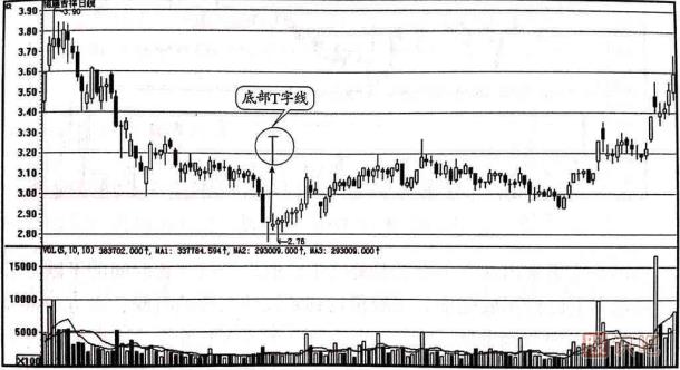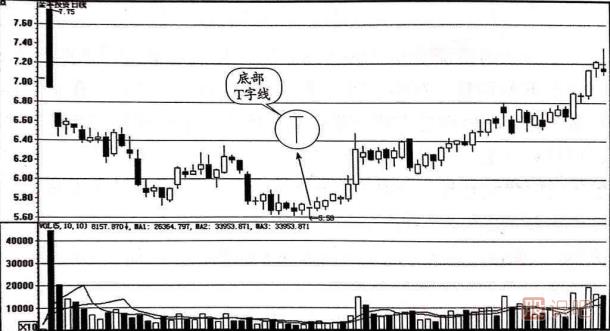 (1)底部T字線的出現,往往是主力的誘空行為,通常伴有地量,是見底的一種信號。