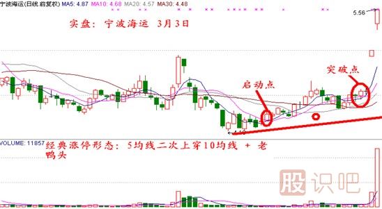 5均線二次上穿10均線+老鴨頭形態(tài)