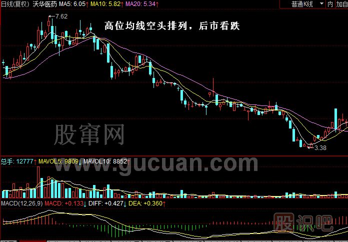 均線-高位空頭排列移動(dòng)平均線入門第三節(jié)高位空頭排列圖形特征由3根移動(dòng)平均線組成,其排列順序是:最上面1根是長(zhǎng)期均線,中間1根是中期均線,最下面1...
