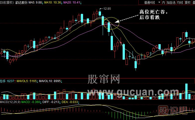 均線-死亡谷移動(dòng)平均線入門第七節(jié)死亡谷圖形特征由3根移動(dòng)平均線交叉組成,短期均線下穿中期均線和長(zhǎng)期均線,中期均線下穿長(zhǎng)期均線,從而形...