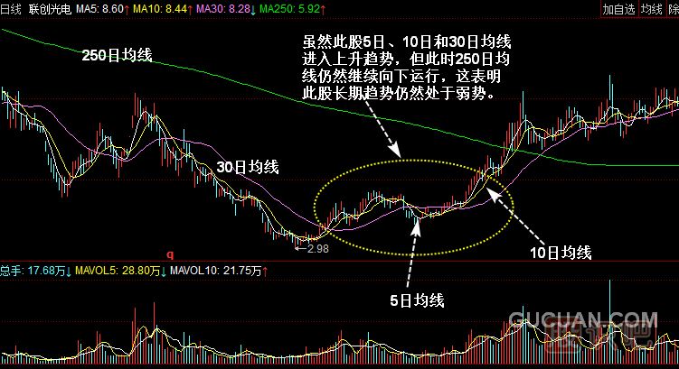 60日均線、120日均線250日均線三者的應(yīng)用1.60日均線的應(yīng)用60日均線即是某只股票在市場(chǎng)上往前60天的平均收盤價(jià)格,其意義在于它反映了這只股票60天的平均成本。60日均...