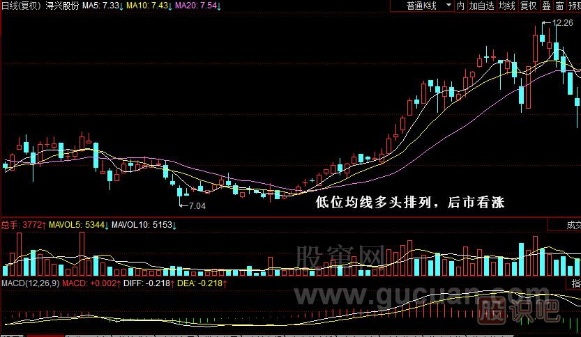 均線-低位多頭排列移動(dòng)平均線入門第三節(jié)低位多頭排列圖形特征由3根移動(dòng)平均線組成,其排列順序是:最上面1根是短期均線,中間1根是中期均線,最下面1...