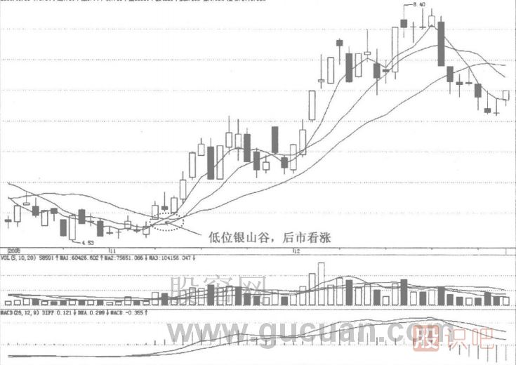 均線-金山谷移動(dòng)平均線入門第六節(jié)金山谷圖形特征金山谷的形狀與銀山谷完全相同,其特色在于金山谷出現(xiàn)在銀山谷之后。實(shí)戰(zhàn)案例解析低位金...