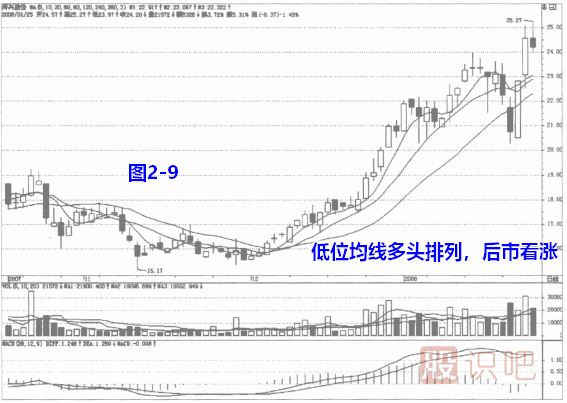 均線低位多頭排列均線低位多頭排列圖形特征由3根移動(dòng)平均線組成,其排列順序是:最上面1根是短期均線,中間1根是中期均線,最下面1根是長(zhǎng)期均線。實(shí)...