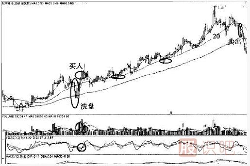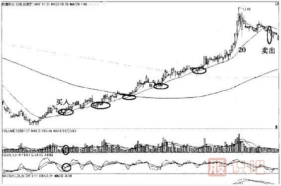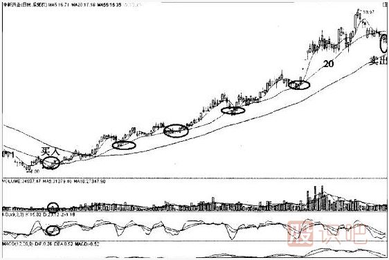 總結(jié):以20日線為生命線的股票,開始出現(xiàn)波段操作的機(jī)會,當(dāng)短期5日乖離率大于5時一般可以考慮短線賣出,而當(dāng)股價回落在20日線獲得支雄時可以考慮回補(bǔ),這樣波段操作是對有一定實(shí)力的投資者而言的,可以使利潤擴(kuò)大化.而對于普通投資者,可嚴(yán)格按照20日生命線操作法則來做,不參與股票短期波動。