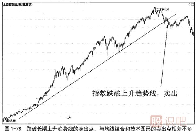 跌破長期上升趨勢線,雖然不能確定大盤由牛走熊,但即使繼續(xù)上漲,指數(shù)也一定不會再沿著原有的上升角度向上運行了,至多會以更緩的角度上漲。股價或指數(shù)跌破長期上升趨勢線后,無論是長線交易者還是中短線交易者,都應(yīng)該清倉離場,退出觀察。