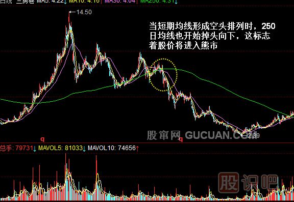 當(dāng)股價(jià)有效跌破250日均線(xiàn)后要馬上離場(chǎng)。因?yàn)?50日均線(xiàn)一旦被跌破,就標(biāo)志著股指或股價(jià)就此走熊,至于能跌到哪里去誰(shuí)也無(wú)法預(yù)料,所以只有盡快出局才能少受損失。