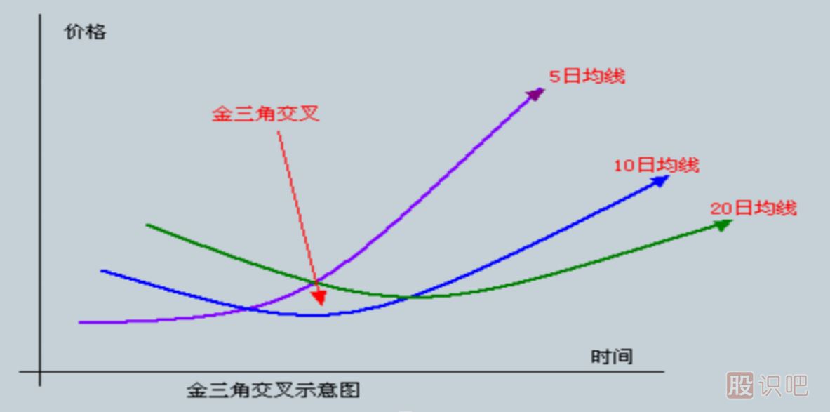 1)是指5日均線上穿10日均線、再穿20日均線,10日均線穿20日均線而產生的三角形,此三角形稱三角交叉。