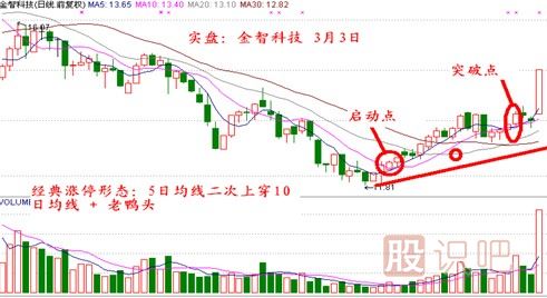 5均線二次上穿10均線+老鴨頭形態(tài)