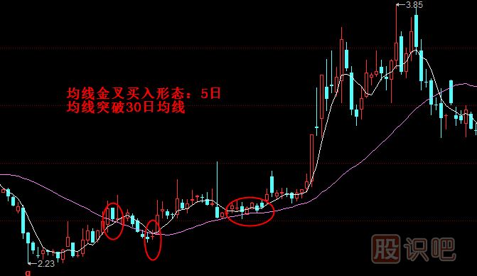 均線金叉買入形態(tài):5日均線突破30日均線