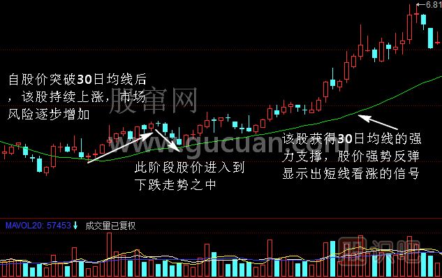 30日均線是股票在最近30個交易日中平均成交價格的連線,其反映的是股價走勢變化的中期趨勢,因此常常作為一個中線操作的均線指標(biāo),但是在短線操作中,投資者也不能忽視30日均線的巨大意義。