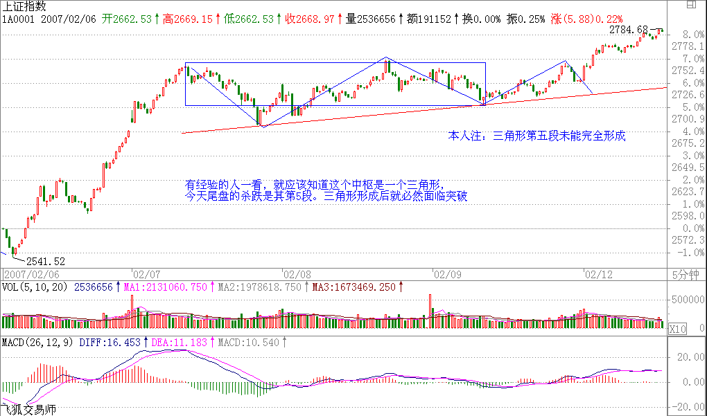 大盤沒什么可說的,就是昨天說的在這里形成一個中樞,今天下午拉起一波,構(gòu)成5分鐘圖上的盤整背馳,這個5分鐘的中樞就像30分鐘的中樞擴(kuò)展。明天還要繼續(xù)完成確認(rèn)這個中樞,如果看不明白中樞的,就看2720點(diǎn),有效站穩(wěn)該點(diǎn)前,震蕩依舊。一旦中樞確認(rèn),而又出現(xiàn)30分鐘次級別以下的背馳后站穩(wěn)2720,那么新1波上揚(yáng)就出現(xiàn),但2850上壓力比較大(本人注:即1月份中樞的上沿)。今天是溫柔的浙江人的忌日,本ID有一個令無數(shù)莊家聞風(fēng)喪膽的壞毛病,就是一旦一只阻擊的股票到1倍升幅以后,本ID一定找一個機(jī)會把手里的貨出掉一半,然后本ID的成本就是負(fù)數(shù)了,后面,怎么玩本ID都肯定是贏家。不過777的題材還在,中線還是有很大空間的,只是本ID的負(fù)成本計劃在999之后又一次勝利完成,當(dāng)然要立字為據(jù)。