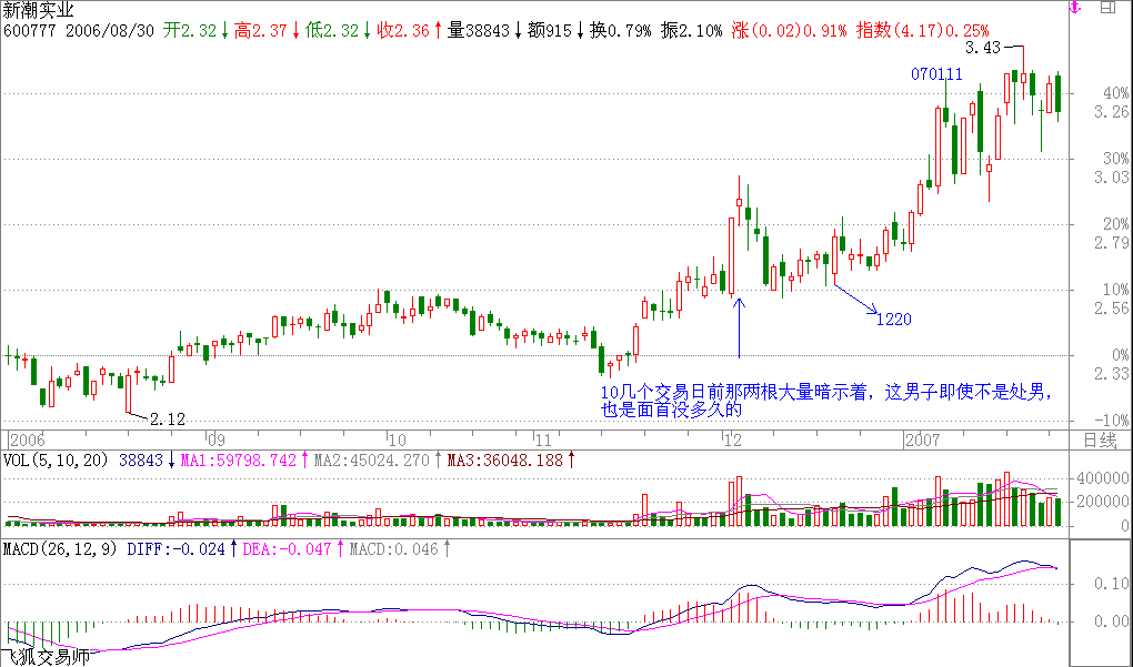 第四的,和江浙派的代碼幾乎一樣,唯一不同就是一個在深圳、一個在上海。一個上海的山東男子是否沾染了上海女男人的氣味,在第一天試盤時,就不再成為本ID的一個疑問。對于面首,解決疑問的最好辦法就是干,真理是干出來的。第一天的體液就不少,浮碼很多,10幾個交易日前那兩根大量暗示著,這男子即使不是處男,也是面首沒多久的。這樣最好了,浮碼多,水就混,藏點大米還不簡單?這大米藏得又快又多,這種打亂仗的感覺真不錯,就像一場NP游戲,誰怕誰呀。一般來說,對于大資金來說,打亂仗是最好玩的,記得N年前,那次,把一個面首從7元多一下干了N倍,中途就在20多換了一口氣,4家人,一直打亂仗,其他人在周圍進進出出晃悠著,好玩透了,還是NP好呀。(600777)